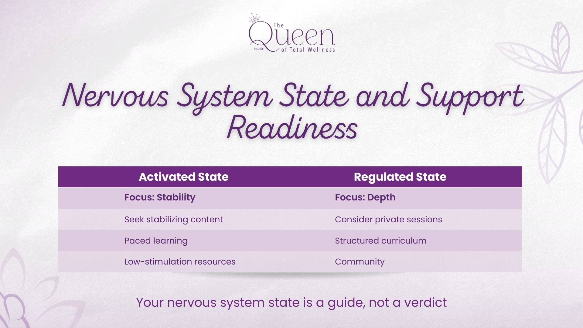 When the nervous system is dysregulated, decisions can feel either impossibly overwhelming or urgently necessary. Neither state is ideal for choosing support. Overwhelm leads to avoidance. Urgency leads to misaligned choices.