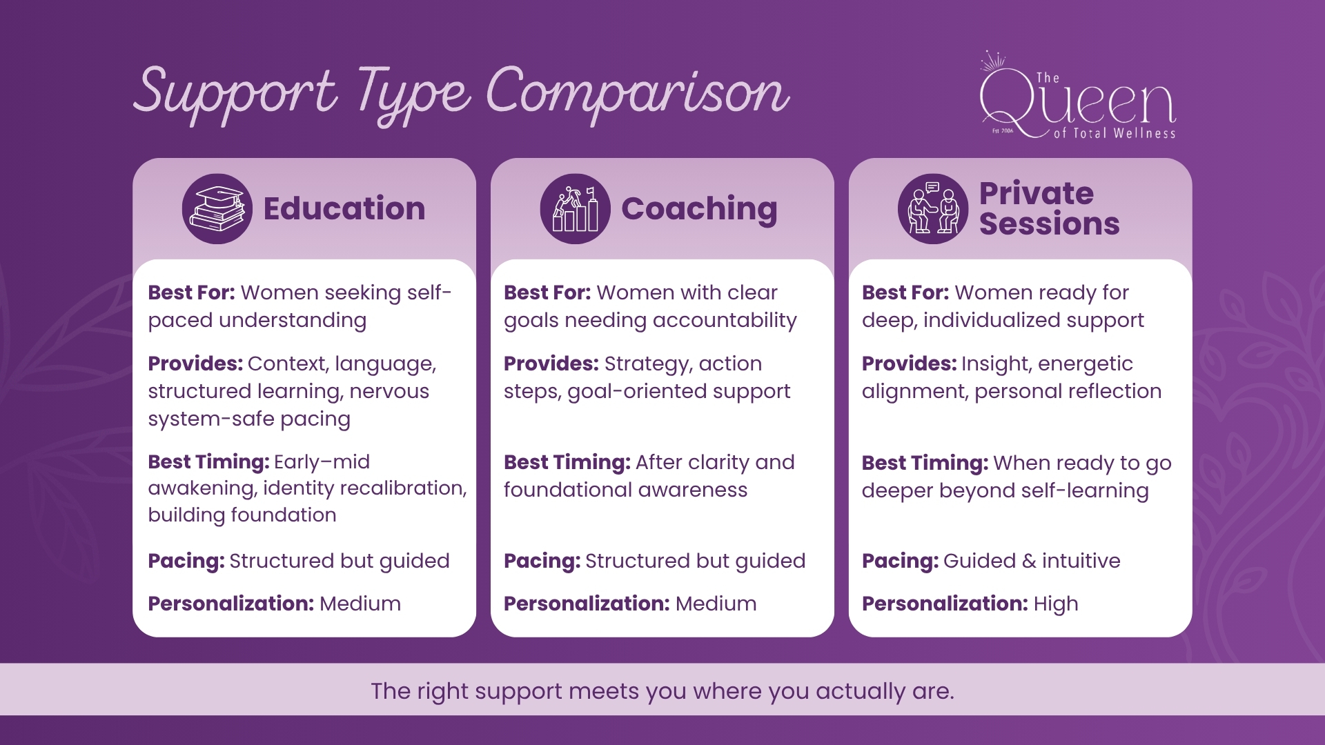 Most women benefit from all three at different points in their journey. The key is knowing where you are right now.